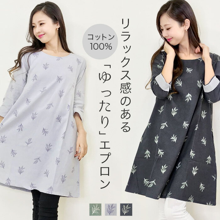 エプロン ワンピース プルオーバー 割烹着 コットン 綿 レディース ナチュラル おしゃれ かわいい 花柄 長袖 七分袖 かぶり プレゼント ギフト 敬老の日 クリスマス/ 送料無料